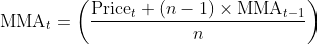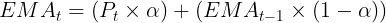 Equation 2.1.1. Computational Formula for the Exponential Moving Average (EMA) with Smoothing Factor.