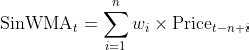 w(i) is the parabolic weight for the price at time t−i. This is calculated as (n−i)² where n is the period of the moving average.