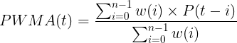 Equation 2.9.1. Formula for the Parabolic Weighted Moving Average (PWMA): Designed to emphasize recent data points, the PWMA uses a unique weighting mechanism where weights decrease parabolically for preceding periods