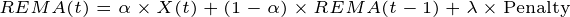 current_rema = alpha * prices[t] + (1 - alpha) * rema[-1] - penalty