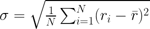 Formula representing the historical volatility of stock returns, where σ is the standard deviation (volatility) and ri denotes individual stock returns over a time period N.