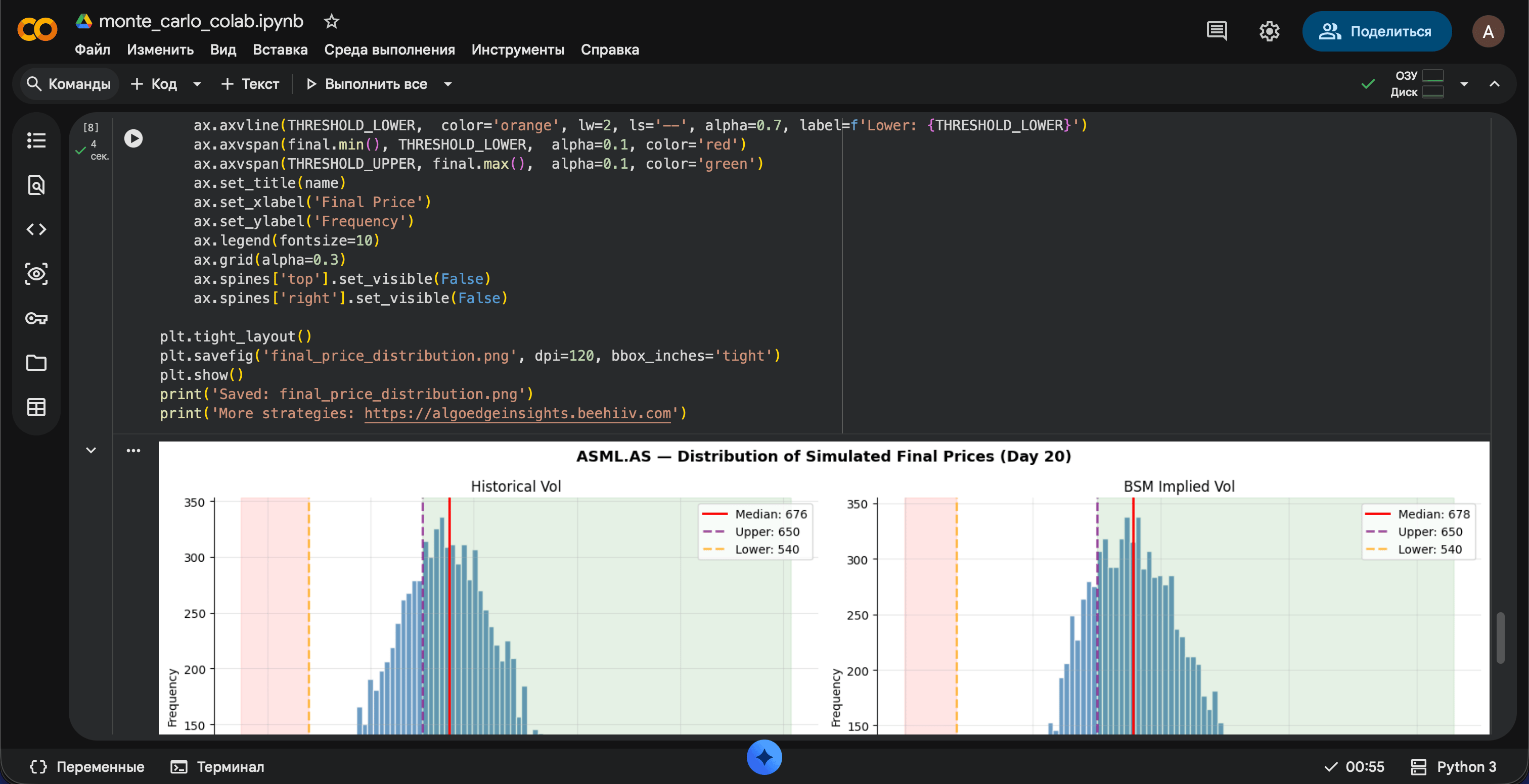 In this section, we’ll discuss the Python code that was used to generate the cone of volatility. This code uses historical stock price data to calculate and visualize potential price trajectories based on past volatility.