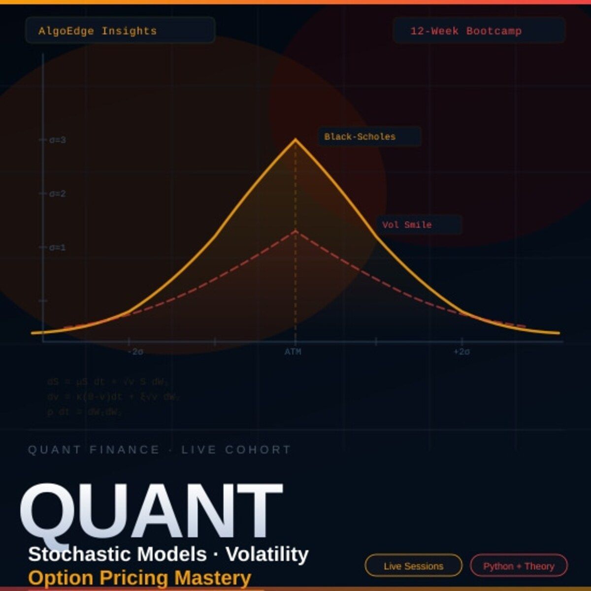 The AlgoEdge Quant Finance Bootcamp — 12 weeks of stochastic models, Black-Scholes, Heston, volatility surfaces, and exotic options. Built from scratch in Python.